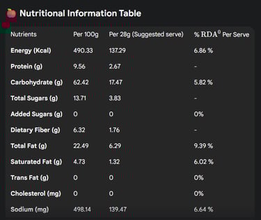 Only 3.83g total sugars and 0g added sugar — perfect for mindful snackers looking to enjoy flavour without unnecessary sweetness.